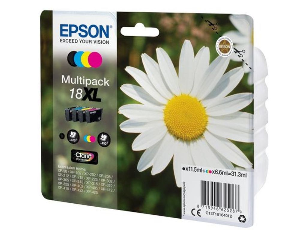 Epson 18XL 4-färger levererar klara utskrifter, oavsett om det är textdokument eller foton. Epson bläckpatroner är skapade med kvalitet och prestanda i åtanke, Epson 18XL 4-färger bläckpatron är ekonomisk och enkel att använda. Epson Claria Home Ink serien är designad för att producera högkvalitativa dokument och livfulla bildutskrifter. Den här bläckpatronen passar bäst tillsammans med Epson-skrivare, tillsammans genererar de utmärkta utskrifter. - Modell: 18XL - Högkvalitativa utskrifter - Kapacitet: Svart (470 sidor), Cyan (450 sidor), Magenta (450 sidor), Gul (450 sidor) - Färg: Svart, Cyan, Magneta, Gul - Kompatibel med: Expression Home XP-30 / XP-102 / XP-202 / XP-205 / XP-302 / XP-305 / XP-325 / XP-402 / XP-405