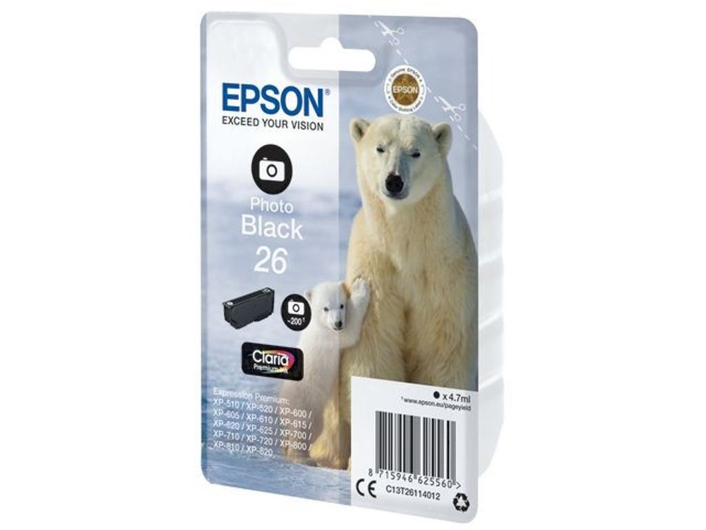 Beskrivning av Bläckpatron EPSON C13T26114012 fotosvart