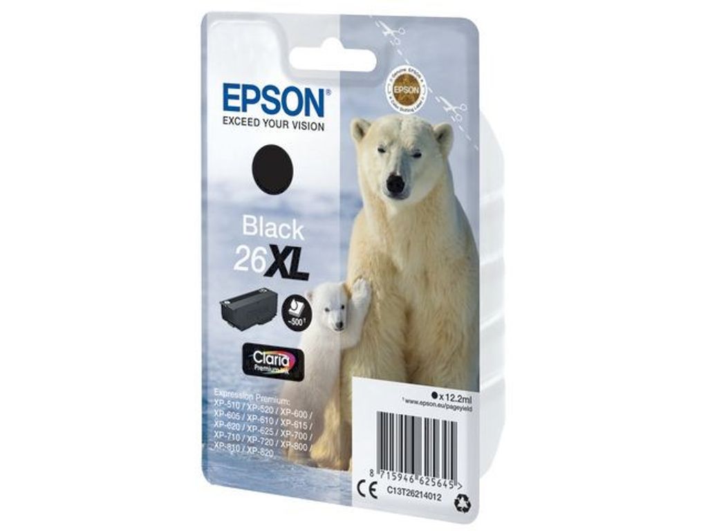 Epson 26XL Svart levererar klara utskrifter, oavsett om det är textdokument eller foton. Epson bläckpatroner är skapade med kvalitet och prestanda i åtanke, Epson 26XL Svart bläckpatron är ekonomisk och enkel att använda. Epson Claria Home Ink serien är designad för att producera högkvalitativa dokument och livfulla bildutskrifter. Den här bläckpatronen passar bäst tillsammans med Epson-skrivare, tillsammans genererar de utmärkta utskrifter. - Modell: 26XL - Högkvalitativa utskrifter - Kapacitet: 12,1 ml - Kapacitet: Ca. 500 sidor vid 5% täckningsgrad. - Färg: Svart - Kompatibel med: Epson Expression Premium XP-600 / XP-605 /XP-700 / XP-800