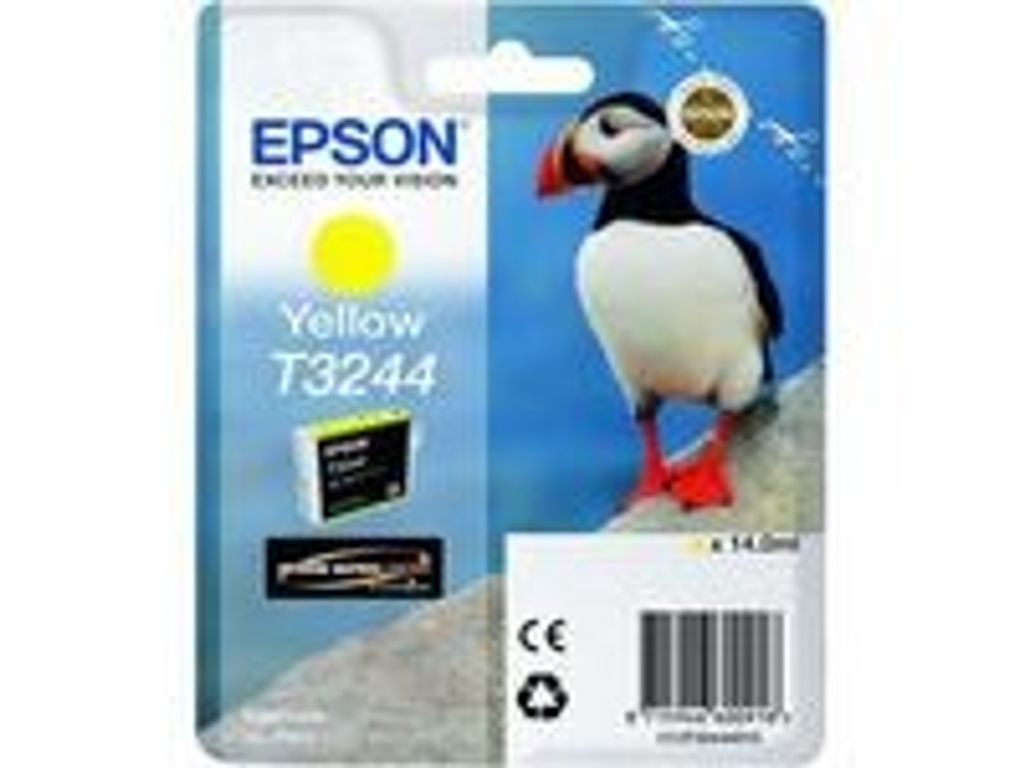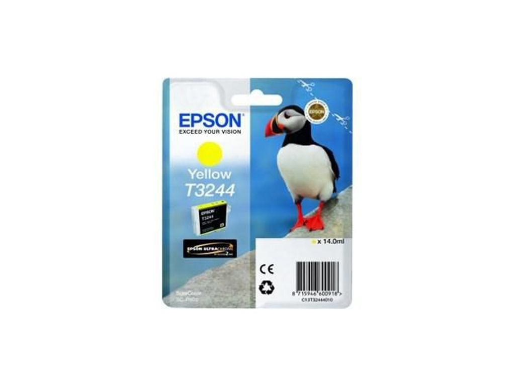 Med UltraChrome-bläcket ger bläckpatronen Epson T3244 tydliga och skarpa resultat. Välj bläckpatronen Epson T3244 när du fyller på med kontorsmaterial för att få enastående kvalitet och precision. Den här patronen innehåller hållbart bläck, vilket säkerställer att utskrifterna förblir i gott skick under lång tid. Med UltraChrome-bläcket får du tydliga och skarpa resultat. Den innehåller 14 ml gult bläck. - Färg: Gul - UltraChrome-bläck - Håller länge - Idealisk för fotoutskrifter - Volym: 14 ml