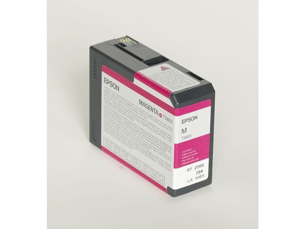 Bläckpatronen Epson T5802 innehåller UltraChrome-bläck, vilket ger överlägsen bildkvalitet och levande detaljrikedom i alla dina foton. Välj bläckpatronen Epson T5803 när du fyller på i skrivaren för att få enastående kvalitet och resultat. Denna bläckpatron har ett kladdfritt bläck, vilket säkerställer att utskrifterna alltid blir tydliga. UltraChrome-bläcket ger skarpa och tydliga utskrifter. Den innehåller 80 ml magentafärgat bläck. - Färg: magenta - Singelförpackning - UltraChrome-bläck - Smetar inte - Idealisk för fotoutskrifter - Passar utmärkt hemma eller på kontoret - Volym: 80 ml - Kompatibel med: Stylus Pro 3800