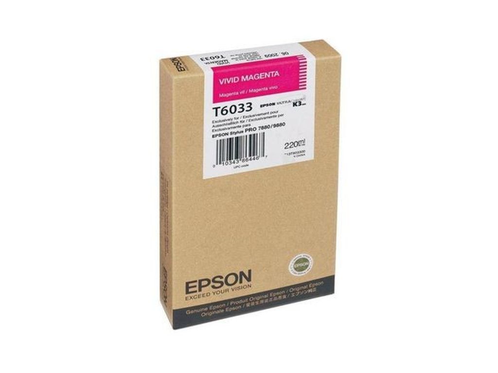 Bläckpatronen Epson T6033 innehåller UltraChrome-bläck, vilket ger fantastisk bildkvalitet och levande detaljrikedom i alla dina foton. Välj bläckpatronen Epson T6033 när du fyller på i skrivaren om du vill ha överlägsen kvalitet och precision. Den har en hög kapacitet och är ett utmärkt val för stora utskriftsvolymer och långvarig användning. Det kladdfria bläcket säkerställer att dina utskrifter förblir tydliga under lång tid. Bläcket är även hållbart, vilket säkerställer att utskrifterna förblir i utmärkt skick under lång tid. - Färg: levande magenta, magenta - Singelförpackning - UltraChrome-bläck - Kladdfritt och med lång hållbarhet - Hög kapacitet - Utformad för fotoutskrifter - Passar utmärkt hemma eller på kontoret - Volym: 220 ml - Kompatibel med: Stylus Pro 7880, 9880, 7800, 9800