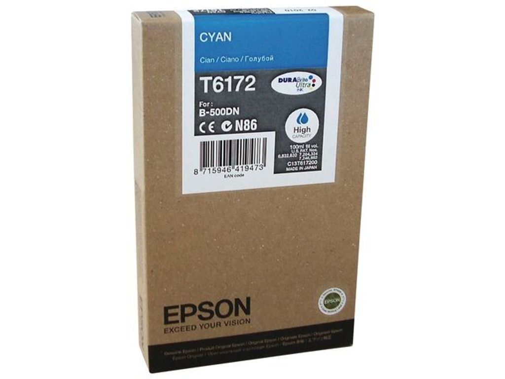 Bläckpatronen Epson T6172 innehåller DURABrite Ultra-bläck, vilket ger fantastisk bildkvalitet och enastående detaljrikedom i alla dina foton. Välj bläckpatronen Epson T6172 när du fyller på i skrivaren om du vill ha enastående kvalitet och precision. DURABrite Ultra-bläcket ger skarpa och tydliga utskrifter. Den har hög kapacitet, vilket gör den till ett perfekt val för större utskriftsvolymer. - Färg: cyan - Kapacitet på 7 000 sidor - Singelförpackning - DURABrite Ultra-bläck - Volym: 100 ml - Försändelsens vikt: 240 g - Djup: 109 mm - Höjd: 28 mm - Bredd: 170 mm - Kompatibel med: Business Inkjet B500DN