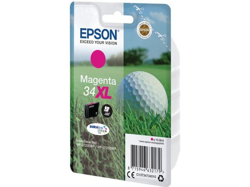 Epson T3473 XL Magenta levererar klara utskrifter, oavsett om det är textdokument eller foton. Epson bläckpatroner är skapade med kvalitet och prestanda i åtanke, Epson T3473 XL Magenta bläckpatron är ekonomisk och nekel att använda. Epson bläckpatroner är designade för att producera högkvalitativa dokument och livfulla bildutskrifter. Den här bläckpatronen passar bäst tillsammans med Epson-skrivare, tillsammans genererar de utmärkta utskrifter. - Högkvalitativa utskrifter - Kapacitet: Upp till 950 sidor vid 5% täckningsgrad. - Färg: Magenta - Kompatibel med: Epson WF-3720DWF / WF-3725DWF