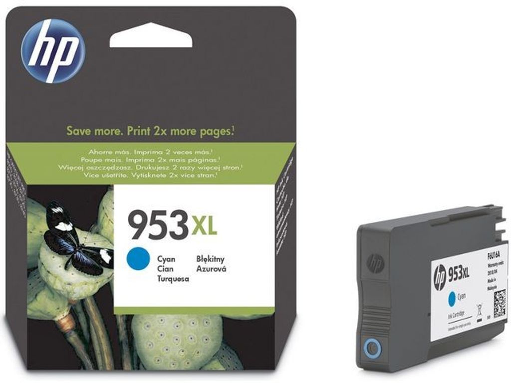 HP 953XL-bläckpatronen i cyan producerar upp till 1 600 sidor i professionell kvalitet. Med HP 953XL-bläckpatronen får du professionella resultat. Den här bläckpatronen är kompatibel med HP OfficeJet Pro 8000-serien med bläckstråleskrivare. Med den här bläckpatronen sparar du tid eftersom den kan användas för att skriva ut i höga hastigheter. En patron i cyan med hög kapacitet skriver ut upp till 1 600 sidor. Det pigmentbaserade bläcket är utformat för användning på kontoret och skriver ut livfulla färger som får dina affärsdokument att sticka ut. HP-kassetter ger imponerande tillförlitlighet. Den här bläckpatronen är också enkel att återvinna. - Färg: Cyan (pigmenterat) - Kapacitet: upp till 1 600 sidor - Singelförpackning - Professionell kvalitet - Fantastiskt värde - Hög utskriftshastighet - Se kompatibilitetstabellen för lämpliga maskiner