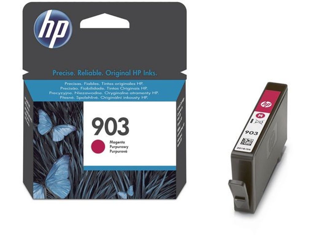 HP 903 bläckpatron i magenta producerar upp till 315 sidor av professionell kvalitet. HP 903 bläckpatron ger professionella resultat. Den här tonerkassetten är kompatibel med HP OfficeJet Pro 6000-serien med bläckstråleskrivare. Med den här bläckpatron sparar du tid eftersom den skriver ut i höga hastigheter. En patron i magenta skriver ut upp till 315 sidor. Det pigmentbaserade bläcket är utformat för användning på kontoret och skriver ut livfulla färger som får dina affärsdokument att sticka ut. HP-kassetter ger imponerande tillförlitlighet. Den här bläckpatron är också enkel att återvinna. - Färg: Magenta (pigmenterat) - Singelförpackning - Professionell kvalitet - Fantastiskt värde - Hög utskriftshastighet - Kapacitet: 315 sidor - Passar till: HP Officejet 6951, 6954, 6962 HP Officejet Pro 6960, 6970, 6974, 6975