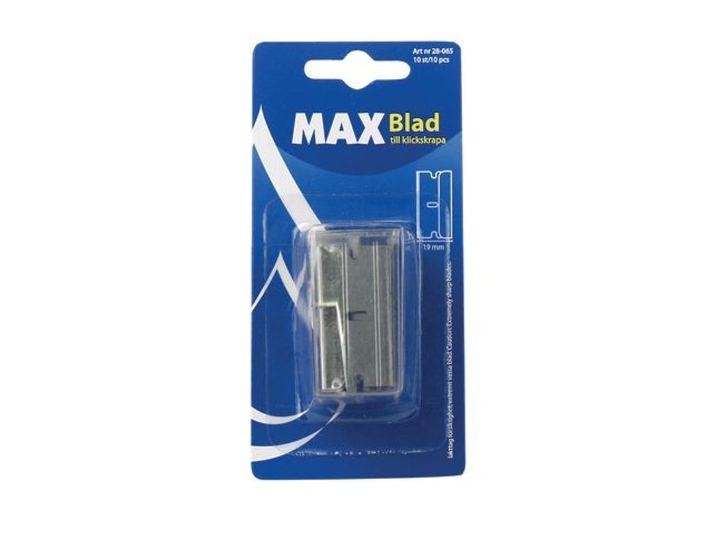 Beskrivning av Blad Klickskrapa MAX 10/fp Blad till klickskrapa i smart säkerhetsetui. - Oanvända blad på ena sidan, använda skjutes in i en öppning på andra sidan.
