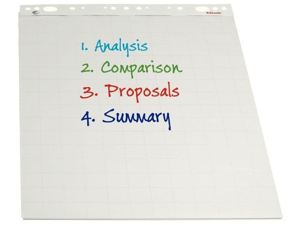 Dela idéer på nästa möte med det här praktiska blädderblocket från Esselte. Skriv anteckningar, skapa planer och rita diagram på det här blädderblocket från Esselte. Flera förstansade monteringshål gör pappersblocket, som har tåligt 60g, kompatibelt med de flesta tavlor. Använd det här mångsidiga blädderblocket för möten och teambuilding-sessioner. - Perfekt för teambuilding-sessioner och möten - Innehåller högkvalitativt 60 g/m²-papper - Flera hål för enkel montering - 50 ark per block - Mått: 59 x 80 cm - Svanenlicensnummer: 40410675