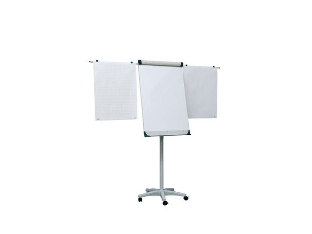 Magnetiskt och mobilt blädderblockställ som är en elegant och mobil lösning för användning i mötesrum och andra multifunktionella rum. Här har du möjlighet att använda två ytor och därmed ge en bättre presentation. Den robusta foten har 5 hjul, varav 3 låsbara, för ökad rörlighet, med justerbar höjd i kombination med den lätta aluminiumramen gör blädderblocket passande på alla kontor. - Mobilt design-blädderblock - Högkvalitet magnetisk yta (whiteboadyta) - Med två magnetiska förlängningar som gör att du kan visa upp till tre pappersark - Stabil metallkonstruktion - Pennhållare - Justerbar höjd: 175-195 cm - 5 hjul (3 låsbara)
