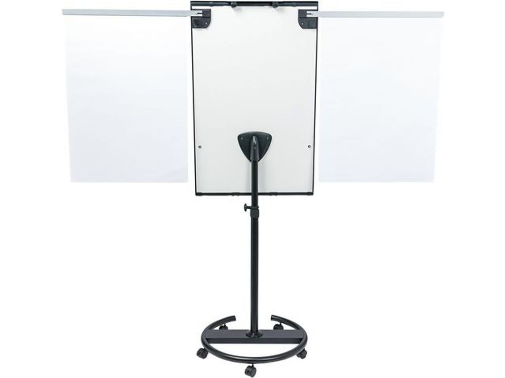 Robust mobilt blädderblocksställ för frekvent användning. Pulverlackerad pappersklämma i stål och justerbara papperskrokar. Magnetisk och avtorkningsbar whiteboardyta i lackerat stål (H 105 x B 68 cm). Maximal höjd 205 cm och ett golvutrymme på 63,5 cm / diameter. Rund fot utrustad med 5 låsbara hjul. Färg på fot och ram: Pantone 433C. Pennhållare med full bredd, två magnetiska förlängningsbara armar och monteringsanvisningar ingår. - (H 105 x B 68 cm) - Maximal höjd 205 cm och ett golvutrymme på 63,5 cm/diameter.