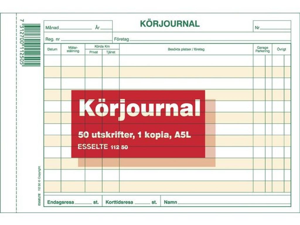 Beskrivning av Blankett körjournal A5L 2x50 blad Svensktillverkade blanketter - Esselte körjournal inkl. kopia med Svanen I block med 50 utskrifter. 1 kopia. A5L. 2 x 50 blad. - - Svanen: Licensnummer: 30410461