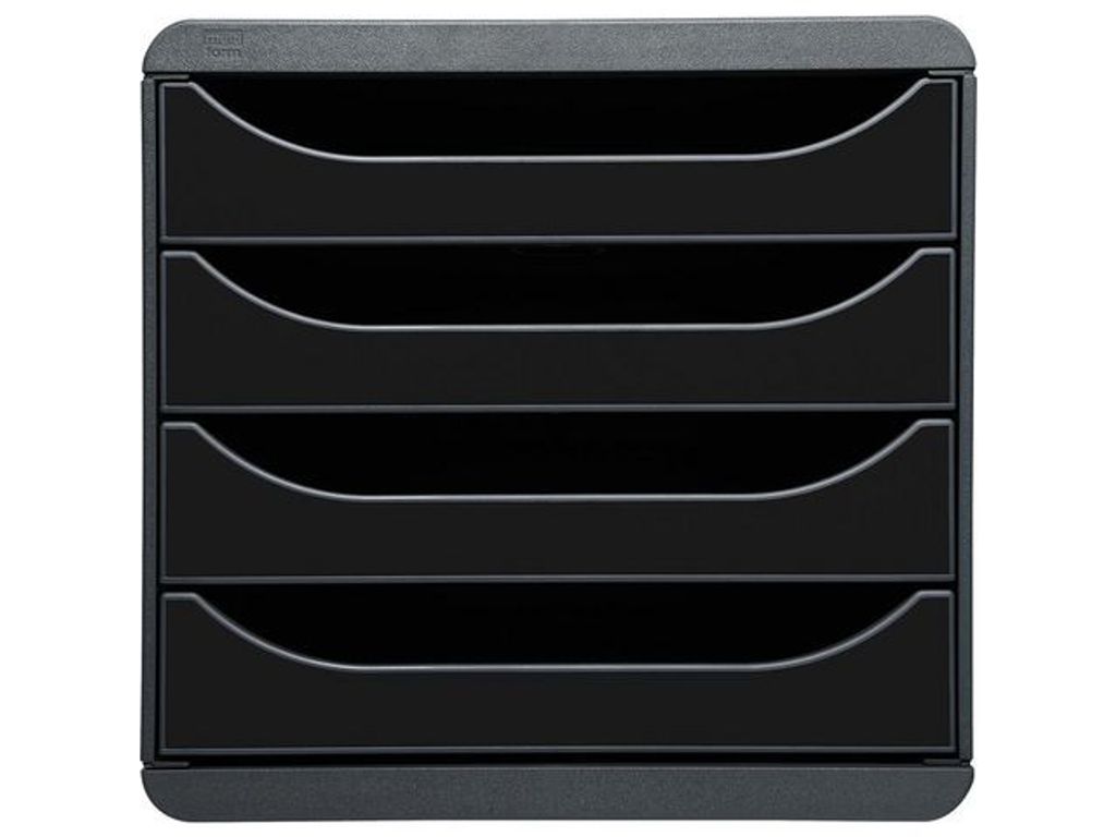 Elegant blankettlåda med fyra lådor med utdragsstopp. Slitstarkt lådset med 4 lådor på 55mm för förvaring av A4+ dokument. Elegant blankettlåda med fyra lådor med utdragsstopp. Förvaringen BIG-BOX Glossy Forever Young i svart med blank framsida har ett mycket starkt hölje som tål stor vikt. 25 års garanti och Blue Angel-certifierad. - Yttermått: 347x278x267mm - Tillverkad i Österrike - Blue Angel-certifierad - Format: A4+ - PS-plast - Monocoque hölje
