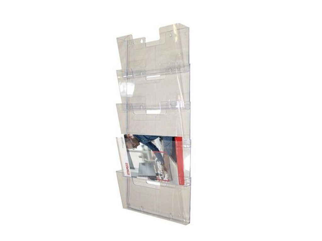 Beskrivning av Blankettfack 5-fack transparent Blankettfack med 5 fack som kan monteras på vägg. Plasten transparent med lätt grå färg. - Mått: Höjd 46,8 x Bredd 33,5 x Djup 8,2 cm - Färg: Transparent - Monteras på vägg