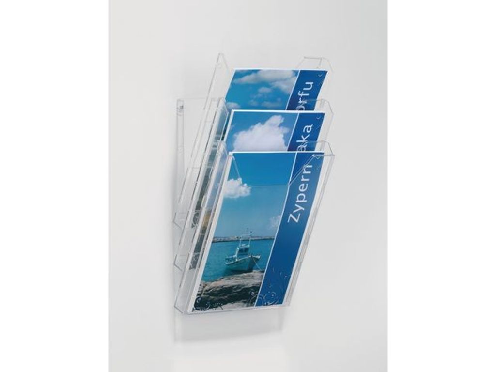 Kombinera det som passar dig med den utbyggda smarta och multifunktionella COMBIBOXX-serien. Blankettfack av transparent plast för förvaring av broschyrer eller annan information i format A4 och 1/3 A4. Facken kan placeras stående på bordet eller sättas upp på väggen genom att vända på bakstycket. Finns i set eller kan byggas ihop efter behov. Bruksanvisningar och skruvar för väggmontering ingår. Komplett set med 3 A4 blankettfack och 1 frontskiva. Utbyggbar med Combiboxx A4 extension (8579) eller Combiboxx 1/3 A4 (8590). Transparent.