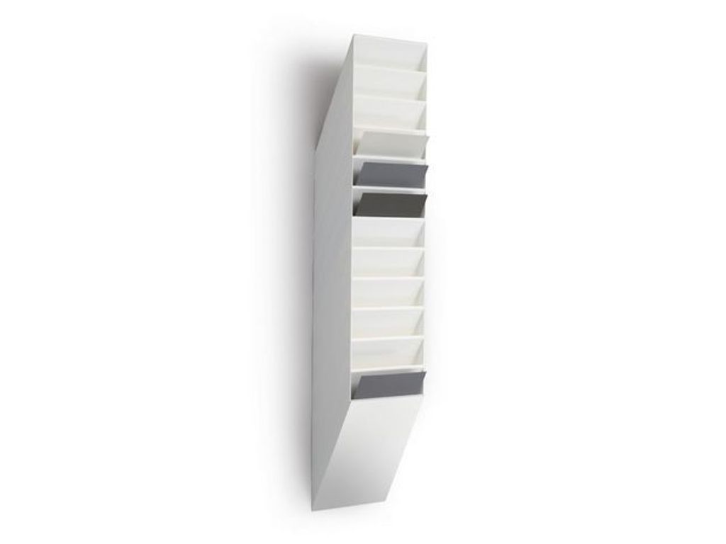 Det tåliga broschyrstället DURABLE FLEXIBOXX är väggmonterat och utgör en praktisk plats att bunta ihop reklamblad, stående broschyrer och post. Med broschyrstället DURABLE FLEXIBOXX är det enkelt att organisera och stapla kommunikationsbaserade utskrifter och post. Det finns med 12 fack där du prydligt kan placera läsmaterial i en viss ordning. Det här är ett lämpligt, välbehövligt tillskott till bokhandlar, bibliotek och postkontor. Det är en elegant, minimal inredningsdetalj för kala väggar, samtidigt som den monterbara funktionen sparar golvyta. - Lämpligt för att stapla läsmaterial - Monterbart, tåligt och robust - Har en enkel design - Kan användas i bokhandlar, bibliotek och postkontor - Antal fack: 12 - Material: Polystyren - Format: A4 - Färg: Vit - Mått: 111,5 x 24 x 13,5 cm