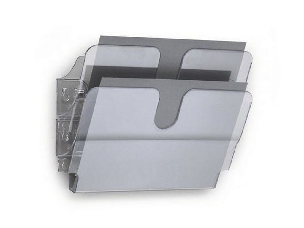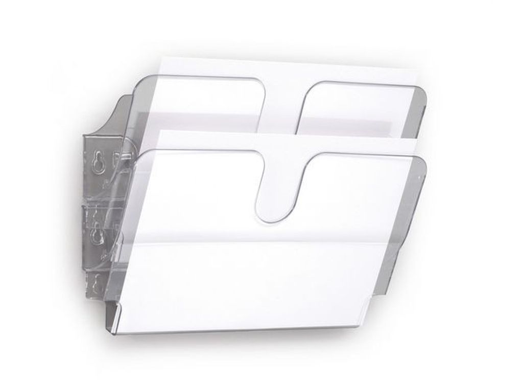 Organisera mappar, tidskrifter eller dokument i snygg väggdisplay. Praktiska fack som rymmer broschyrer, tidningar eller blanketter i A4 liggande format upp till 23mm tjocka buntar . Bygg ut efter behov genom att haka i facken efter varandra. Går även att använda som singelfack. Facken skruvas upp på väggen, skruv medföljer. Mått ihopmonterat 2-fack (HxBxD): 250x340x100mm - Antal fack: 2 - Fackens djup: Cirka 23 mm - Format: A4 - Färg: Transparent - Mått: 250 x 340 x 100 mm - Material: Polystyren (PS) -