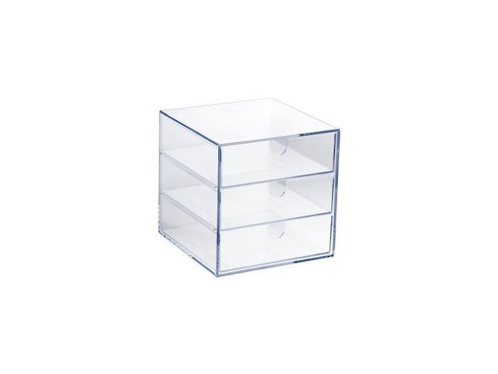 Blankettfack PALASET 3-fack är en högkvalitativ och tidlös fleranvändningslåda. Använd den för att hålla olika små föremål som pennor, stift, gem, smink, smycken, skruvar etc. Stapelbara för mer lagringsutrymme. Tillverkad av livsmedelsgodkänt, BPA-fritt material och kan återvinnas i energiavfallet. - Storlek 16,5 x 16,5 x 16,5 cm. - Färg: klar