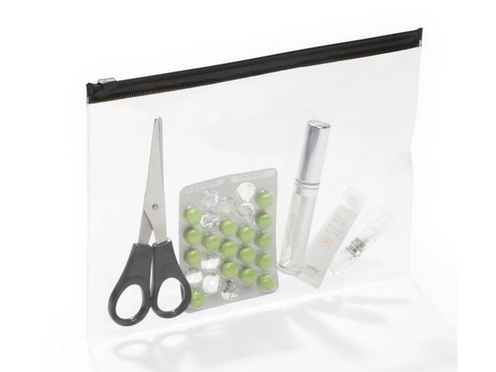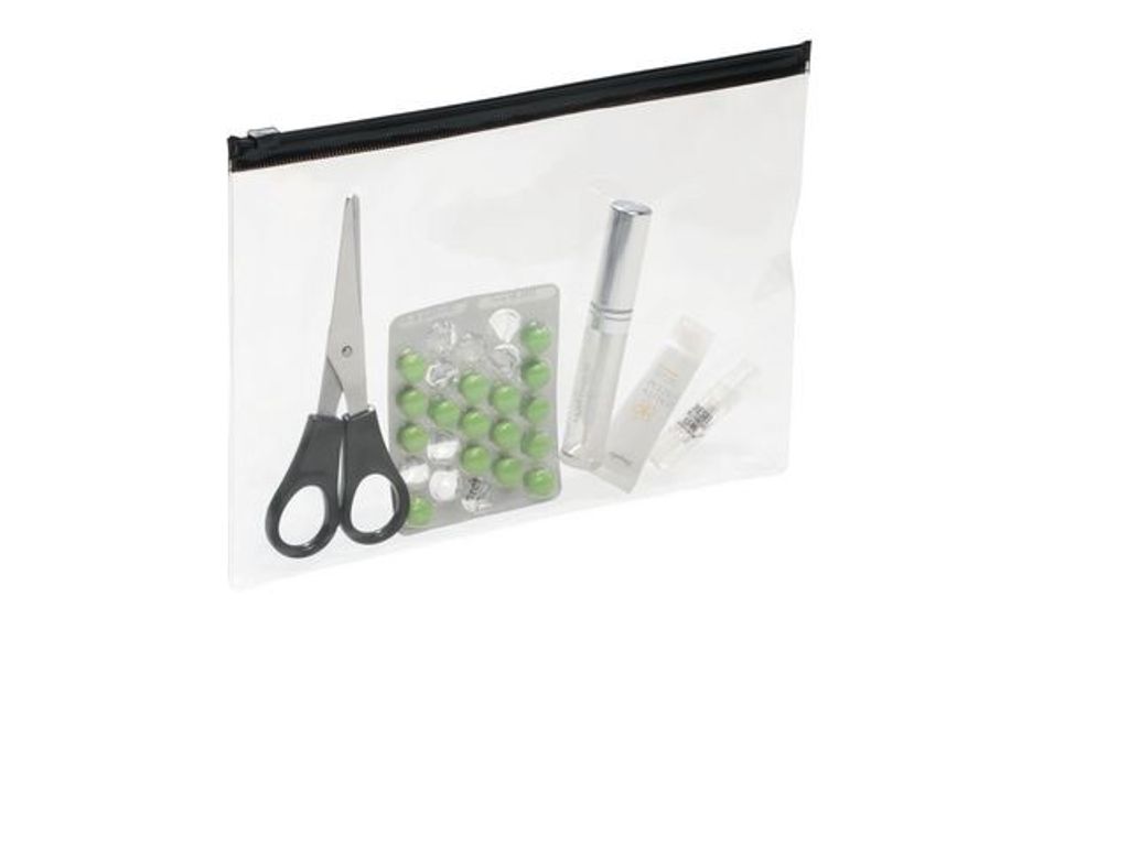 Blixtlåsförsedd plastpåse som kan användas för att förvara och transportera små artiklar som kosmetika, medicin och tillbehör. Tillverkad av högkvalitativ PVC för att garantera en tillförlitlig och långvarig användning. Den här återförslutningsbara påsen är kompatibel med A5-dokument och köksredskap. Den här blixtlåsförsedda påsen är idealisk för användning på kontoret, i hemmet eller när du reser. - Tillverkad av högkvalitativ PVC - Enkelt att förvara - Är återförslutningsbar - Format: A5 - Färg: Svart - Antal: 5