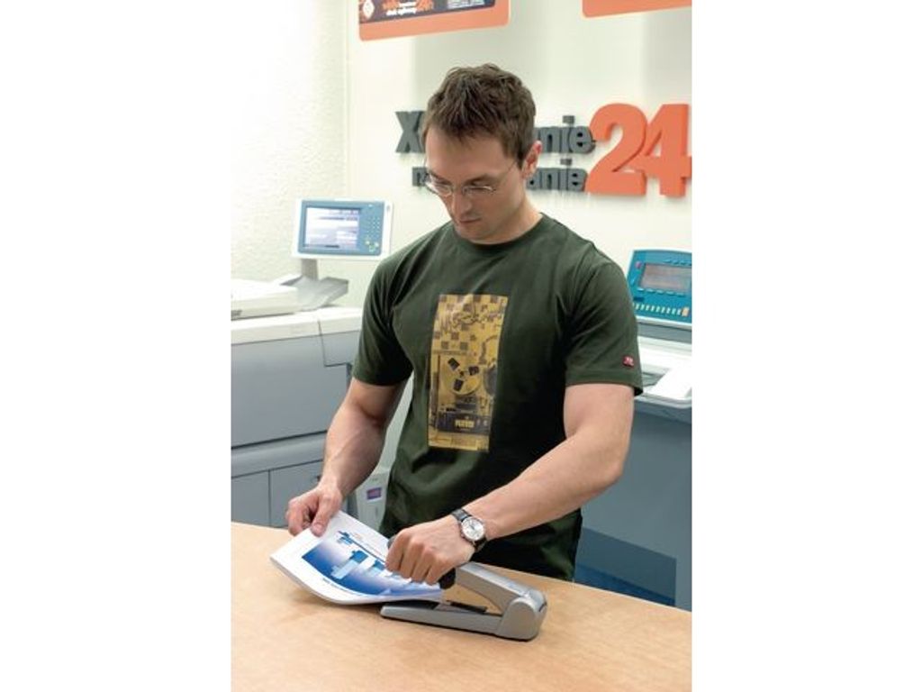 Den här robust häftapparaten från Leitz är både hållbar och proffsig och är försedd med Flat Clinch-teknik och en mängd praktiska funktioner. Den här robusta häftapparaten kan häfta ihop upp 120 ark 80 g/m2-papper, vilket gör den perfekt för att användas i postrummet, i skolan eller på kontoret. Den här häftapparaten från Leitz är kompatibel med häftklamrar i storlek 23/15 och har Flat Clinch-teknik som minskar pappersbuntar med 30 %. Den har också en inbyggd, färgkodad panel som fungerar som en påfyllningsindikator. Med det starka handtaget med gummigrepp är den dessutom garanterat bekväm och användarvänlig. - Robust häftapparat i metall med plasthölje - Häftar upp till 120 ark 80 g/m²-papper - Flat Clinch-tekniken minskar pappersstaplar med 30 % - Inbyggd, färgkodad panel som anger påfyllningsbehovet - enkel mekanism för påfyllning framifrån - Starkt handtag med gummigrepp - Kompatibel med klamrar i storlek 23/15 XL - Färg: Silver