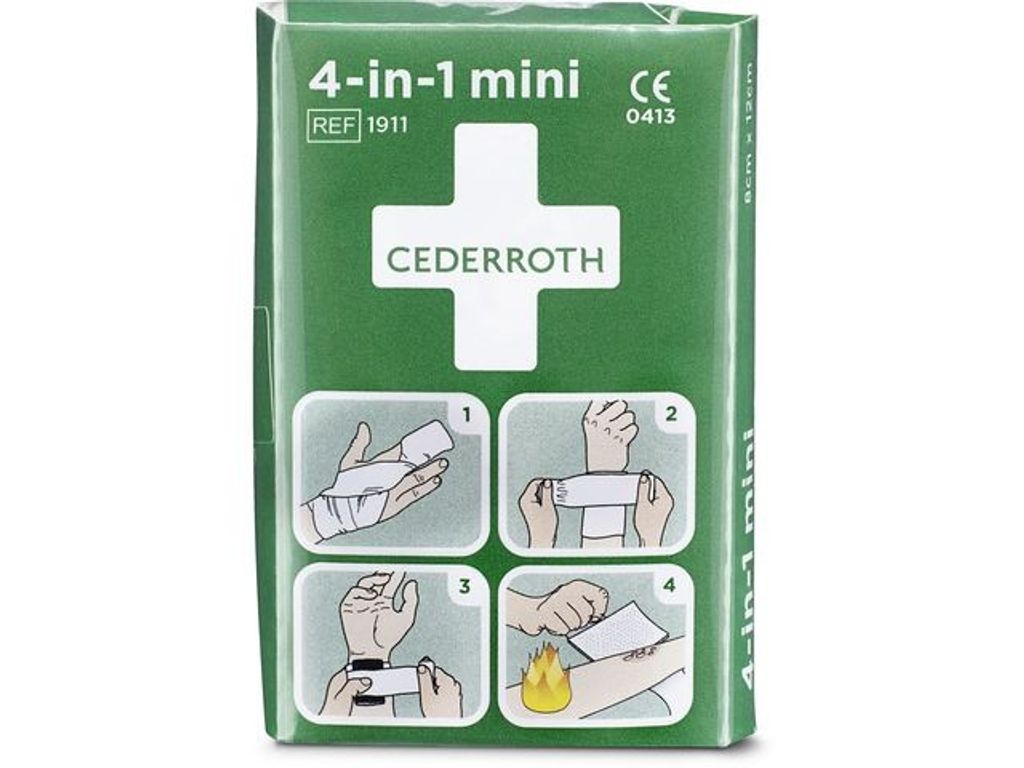 Ett litet första förband speciellt lämpligt för fingrar och tår. Enkelt att använda. Det finns tydliga färgbilder och instruktioner är tryckta direkt på förpackningen. - Innehåll: - 1 st kompress (8 x 12 cm) - 1 st elastisk binda (6 cm x 3 m)
