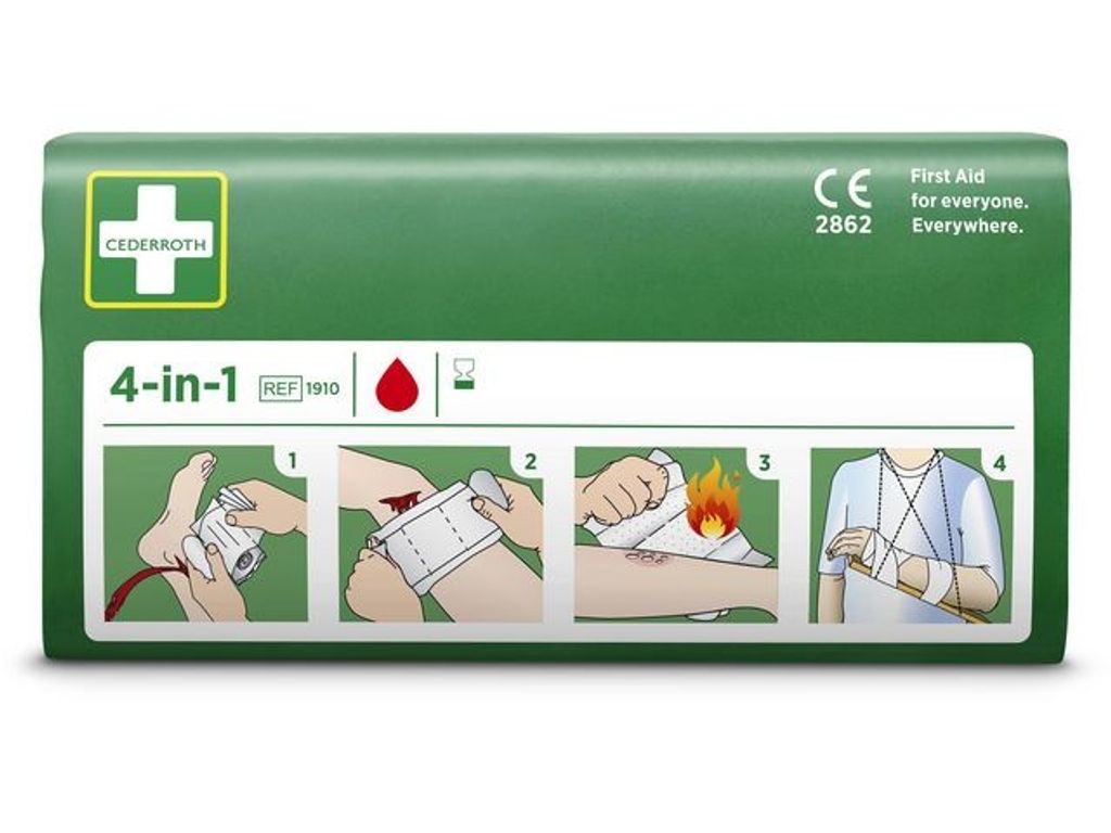 Blodstoppare stor är ett universalt förband med tydliga instruktioner på förpackningen. Enkelt att använda. Blodstopparen är ett universalförband med 4 funktioner. Tryckförband för kraftiga blödningar, täckförband för ytliga sår, brännskadeförband genom kompressens sårvänliga ytskikt samt tillfälligt stödförband. - Innehåll: - 1 st kompress (14 x 23 cm) - 2 st elastiska engångsbindor (10 cm x 3 m)