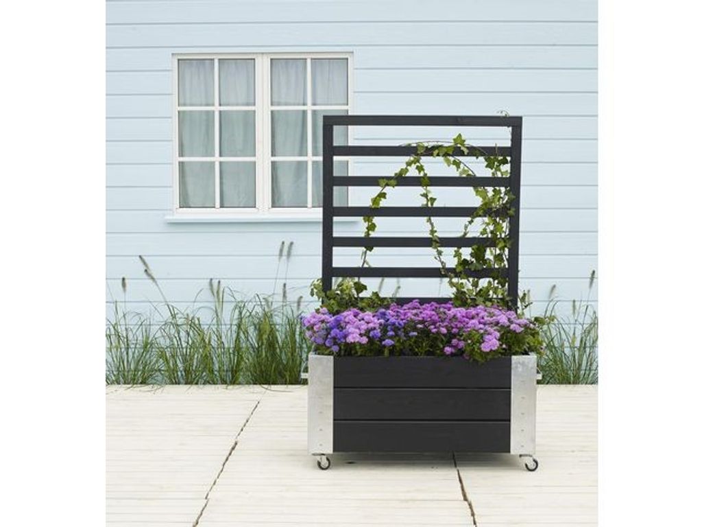 Kreativt, snyggt och smart! Inred snyggt men också smart med dessa blomlådor. Fungerar bra som avdelare men också en snygg inredningsdetalj. Ett kvalitativt alternativ som är 100% FSC-certifierad. Gjort av barrträ. Varmgalvaniserad stål - inkl. 2 st. handtag och bultar för montering. Inkl. juståerbar botten och fibertexduk (behöver anpassas). - Bredd: 50 cm - Höjd: 130 cm - Längd: 87 cm - Färg: Svart - Vikt: 24,00 Kg