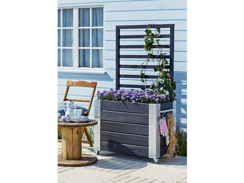 Kreativt, snyggt och smart! Dela av, inred med blommor eller andra planteringar och få en snygg och smart uteplats. Cubichörnen är gjorda i varmgalvaniserad stål och det inkluderas två st. handtag och bultar för montering. En justerbar botten för en fibertexduk inkluderas - Denna behöver (väldigt enkelt) anpassas. Uppdatera smart och snyggt med dessa blomrumsavdelare. Kan med fördel kombineras med adnra blomlådor och spaljéer i samma serie! - Bredd: 50 cm - Höjd: 155 cm - Längd: 87 cm - Färg: Svart - Material: Barrträ - - Spaljè: - Ram: 44x34 mm - Panel: 11x44 mm - Blomlådors höjd utan spaljé är 70 cm