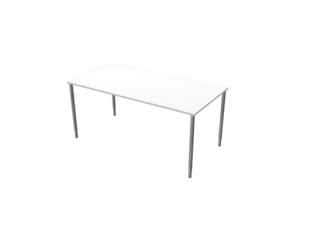 Fristående skrivbord. Mått: 1600 x 800 mm. Bordshöjden på skrivborden är justerbara mellan 680-850 mm. Borden levereras färdigmonterade, förutom benen som enkelt sätts fast med ett par handgrepp. Leverans till lastkaj, godsmottagning eller gatuplan. Stativ: grått. Bordsskiva: vitlaminat