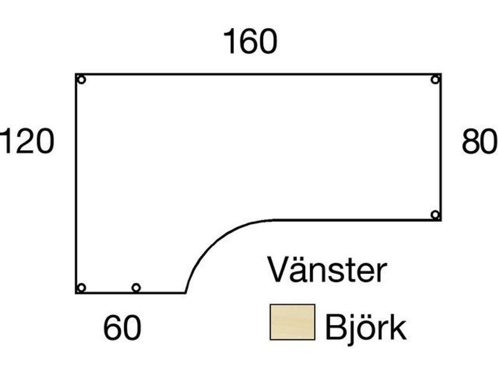 Fristående kombibord. Bordsskivan i björklaminat. Svartlackerat underrede. Justerbar höjd 68-85 cm. Samtliga bord går att få i andra färger, kontakta oss för mer information. Björk, vänster, 160 x 120 x 80 x 60 cm.