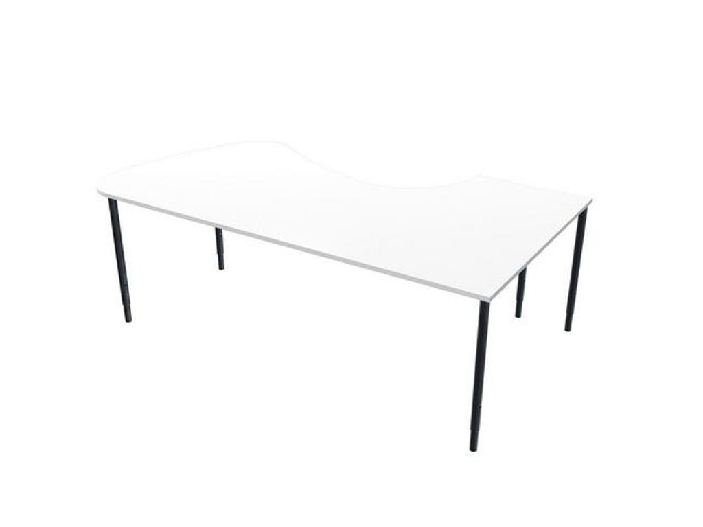 Fristående hörnbord 2200 x 1200 x 1100 x 600 mm. Vänsterställt. * Bordshöjden på skrivborden är justerbara mellan 680-850 mm. * Borden levereras färdigmonterade, förutom benen som enkelt sätts fast med ett par handgrepp. * Leveranstid 12 arbetsdagar * Leverans till lastkaj, godsmottagning eller gatuplan. Stativ: svart. Bordsskiva: vitlaminat