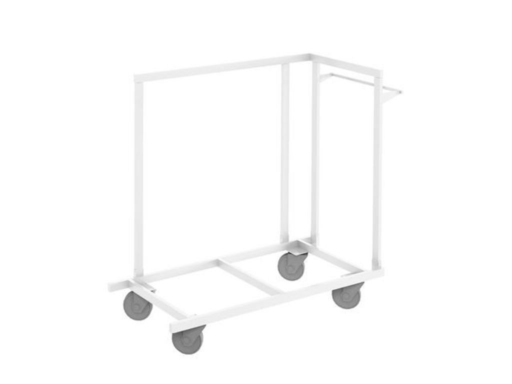 Beskrivning av Bordsvagn liten 1345x509x1160 vit Bordstransportör Bordstransportör för fällbord. Plats för tio bord. - Tillbehör till fällbord