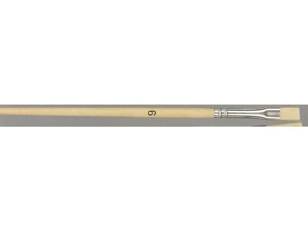 Borstpenseln har definierade penseldrag och förmågan att producera ett jämnt lager färg, vilket gör den till ett tillförlitligt tillbehör för en professionell eller hobbymålare. Borstpenseln har ett litet och platt huvud som ger enhetliga och kontrollerade penseldrag. Målare kan luta penseln för att exponera dess fina kant och producera skarpa linjer och drag. Penseln har ett trähandtag som gör den bekväm och stadig att hålla i, så att användaren får ett stadigt grepp. - Antal: 10/FP - Lämplig för målning - Har ett platt huvud - Kan användas av barn - Mått: längd 21 mm, Ø5,8 mm - Material: FSC-certifierat obehandlat trä, aluminium och nylon
