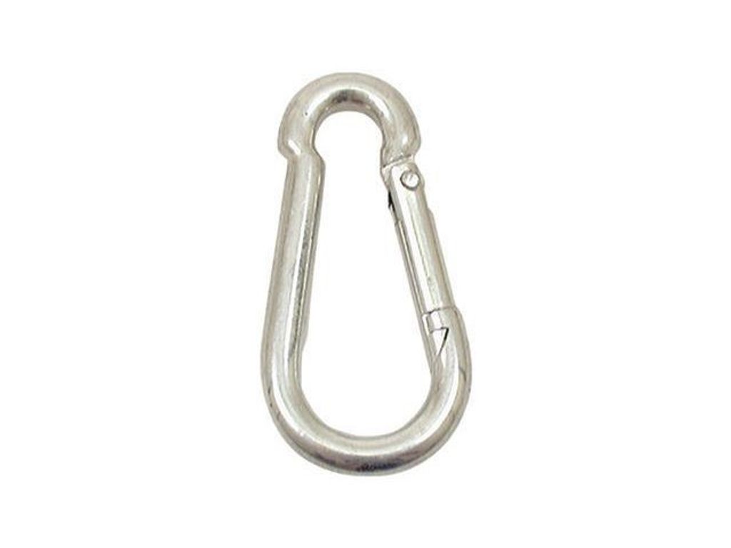 Beskrivning av Brandkarbinhake 100mm galviniserad Galvaniserad brandkarbinhake. I galvaniserat utförande. - Storlek: 100mm