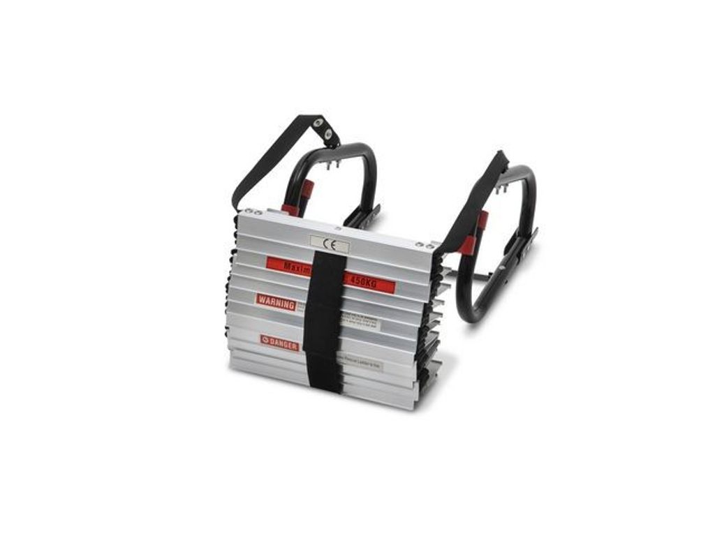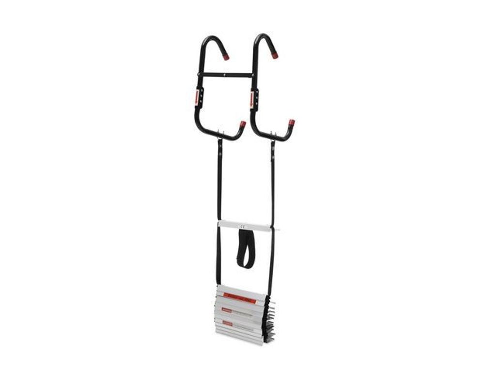 Hopvikbar brandstege ifrån NEXA som ger dig en snabb evakuering ifrån bostaden vid en eventuell brandsvåda. Brandstegen är i aluminium med remmar av nylon samt robusta krokar. Placera krokarna över fönsterkarmen vid en eventuell evakuering. Brandtsegen är liten och kompakt när den är förpackad och lätt att veckla ut vid behov. Rekommenderas för bostäder med två våningar. - Längd: 4 m - Maximal belastning: 400 kg, max 3 personer på stegen - Maximal evakueringshöjd, mätt från fönstrets nederkant: 4,3 meter - Maximal karmtjocklek: 30 cm - Material: Aluminiumsteg med remmar i nylon - Antal trappsteg: 12 stycken - Stegbredd: 30 cm
