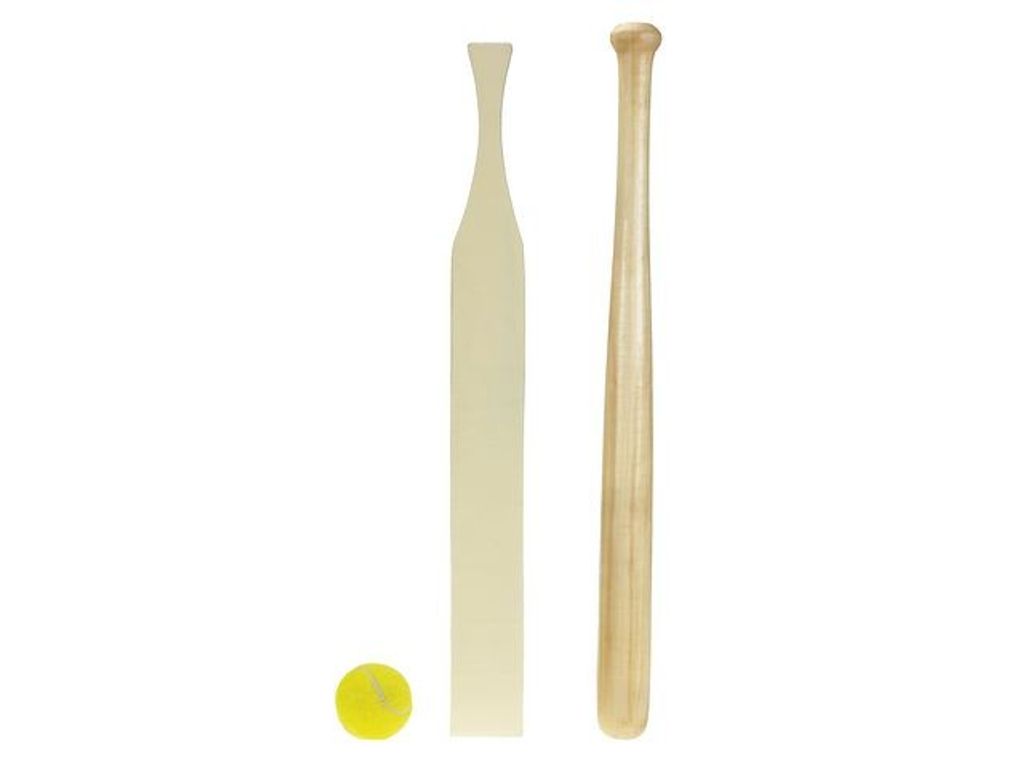 Beskrivning av Brännbollset Brännbollset i hög kvalié av trä. Inkluderar runt och platt slagträ samt tennisboll. Längd runt 60 cm. Längd platt 50 cm. - Tillverkade i Sverige