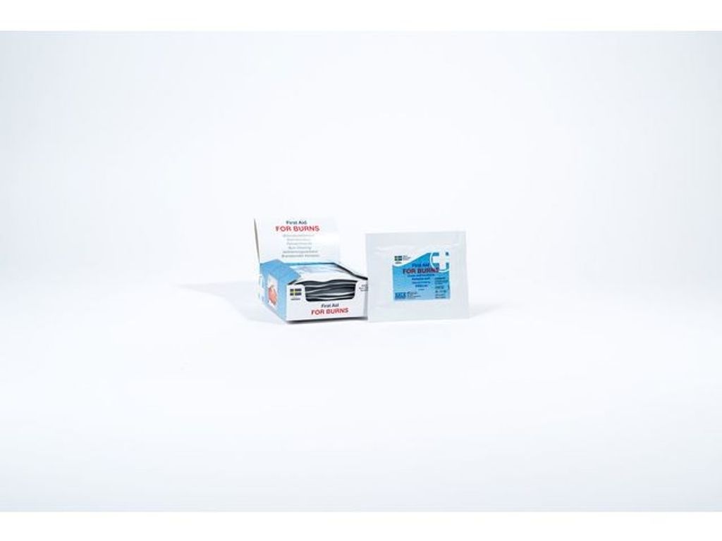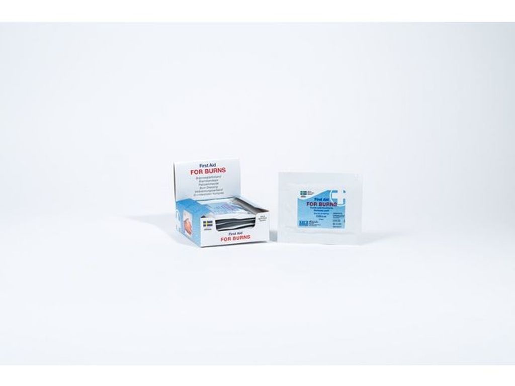 Brännskadekompress i storleken 5x5 cm med gel, 14g. De gelindränkta kompresserna hålls kvar på skadan även vid rörelse vilket gör att de fungerar bra vid transport för fortsatt vård (jfm vatten!). Gelen bromsar effekterna av en brännskada genom att snabbt svalka skadestället och transportera bort värmen. Med användning av brännskadekompress minskar risken för blåsbildning väsentligt. Denna produkt är perfekt för display i butik. - Storlek: 5x5 cm - Antal: 10st - Tillverkade i Sverige