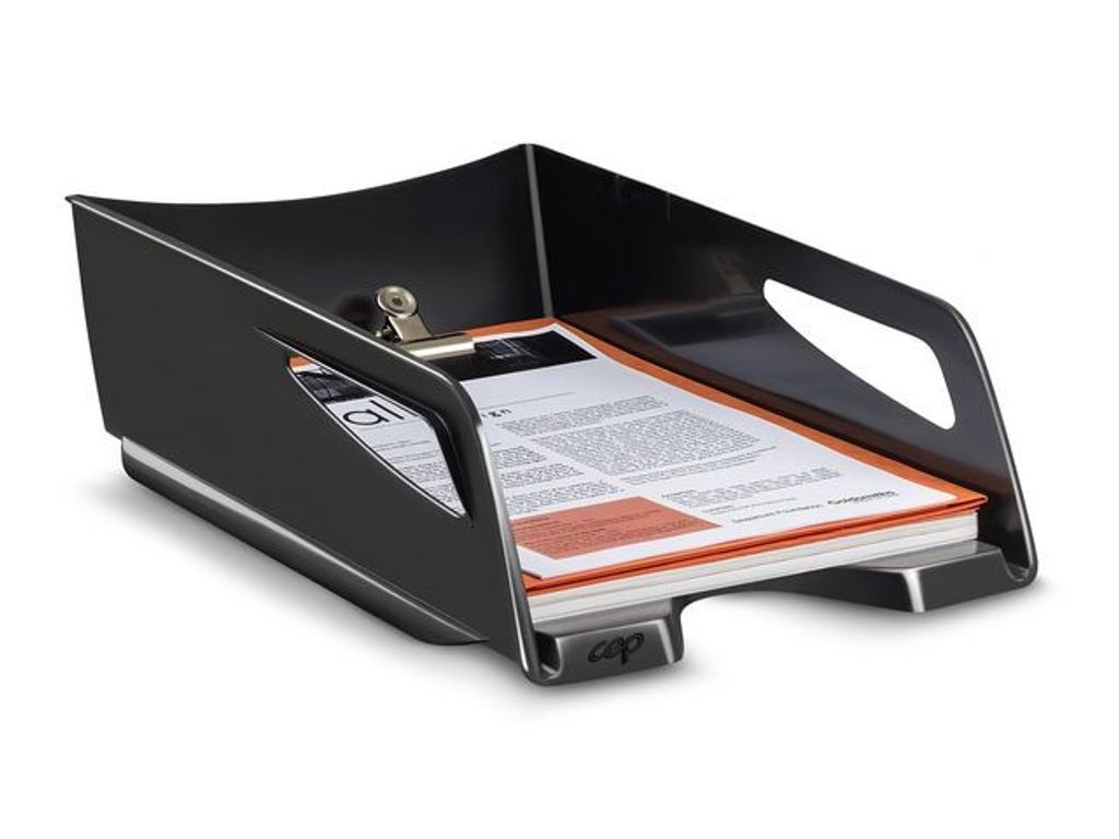 Beskrivning av Brevkorg CEP Maxi A4 svart Mycket bred brevkorg för stora dokument. Elegant, praktisk och robust Brevkorgen är tillverkad av återvunnet plastmaterial. De två handtagen gör den enkel att flytta. Brevkorgen är stapelbar. - Mått: HxBxD 11 x 26 x 37 cm