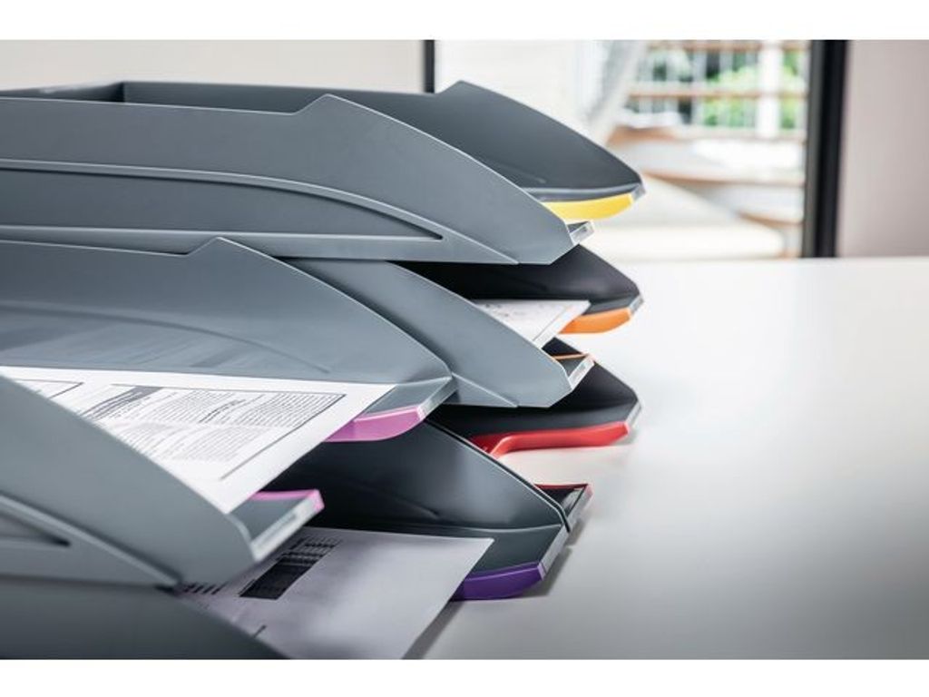 Brevkorg Durable® VARICOLOR med 5 fack. Kan staplas direkt ovanpå varandra eller i trappformation, vilket ger enkel åtkomst till brevkorgens dokument. Brevkorgen har färgade linjer framtill som gör det enkelt att sortera och arkivera. Robust och stabil konstruktion av hög kvalitet. Kan staplas direkt ovanpå varandra eller i trappformation, vilket ger enkel åtkomst till brevkorgens dokument. De olika färgerna på varje fack gör det enkelt att hitta rätt. - Brevkorg av hög kvalitet med 5 fack - Färgmarkeringar för enklare sortering - Mått BxHxD: 255x55x330mm