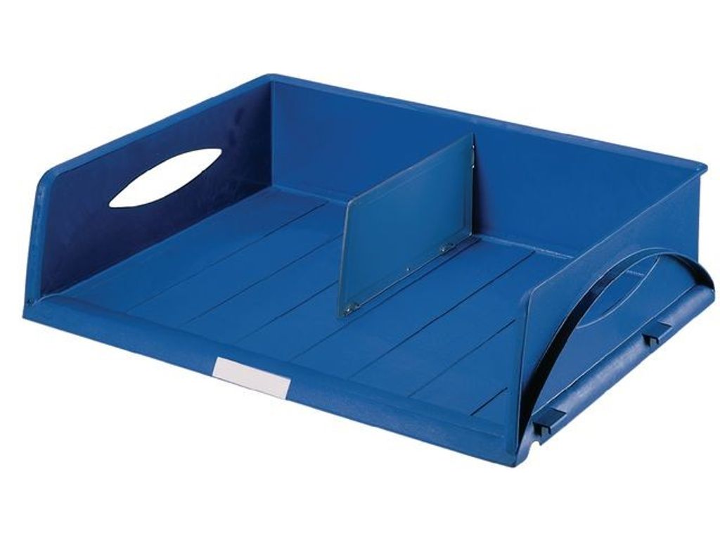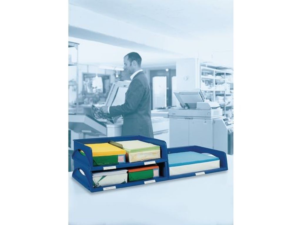 Beskrivning av Brevkorg LEITZ Sorty Jumbo blå Brevkorg för stora format. Perfekt vid kopieringsmaskinen, inbindningsmaskinen eller printern.Sorty kan staplas vertikalt och sättas ihop horisontellt. 1 avdelare medföljer. För formaten: A4/A3/B3/C4. Mått: (BxHxD) 508x127x380mm. Blå.