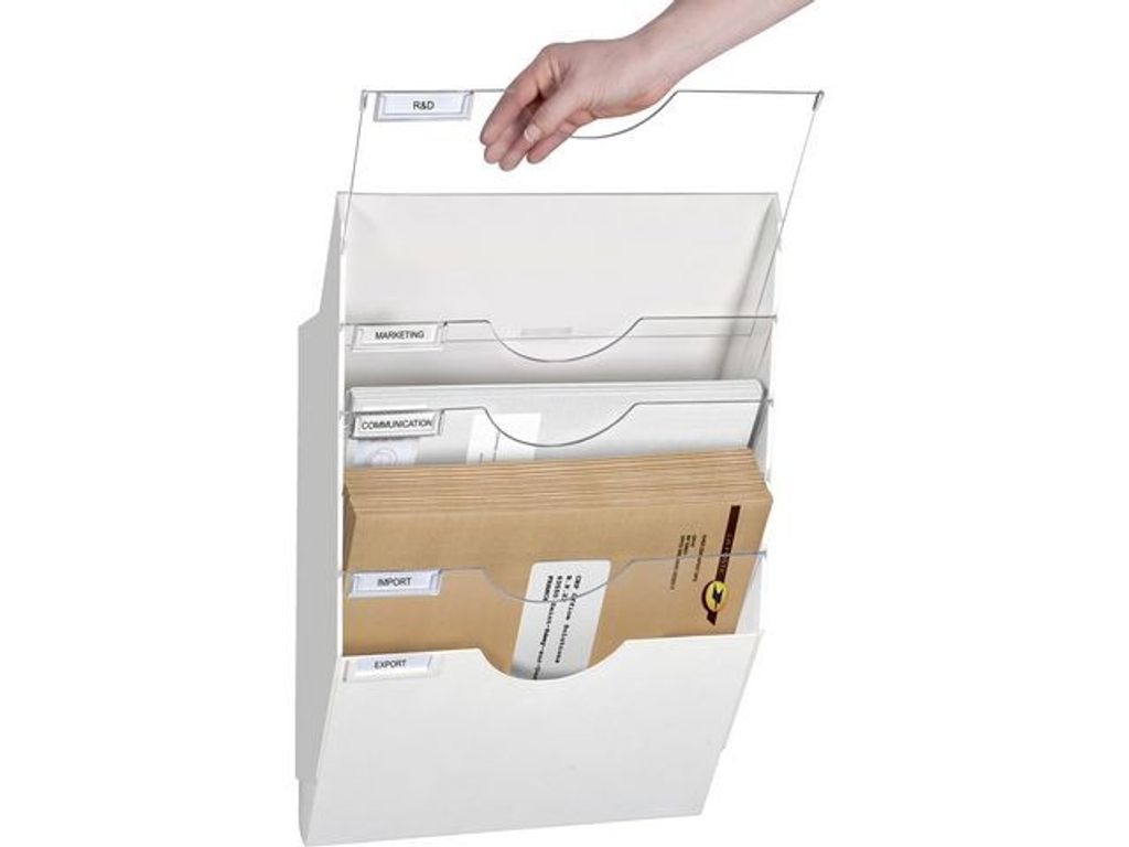 Gör ett bra första intryck med CEP:s ReCeption-sortiment, en serie tillbehör för arbetsplatsen som är särskilt utformade för att skapa ett välkomnande och enhetligt utseende i din reception. CEP ReCeption 153 vägghylla är tillverkad av stöttålig polystyren och det är en attraktiv men praktisk förvaringslösning för din arbetsplats eller i receptionen. Vägghyllan är perfekt för förvaring eller visning av dokument som är större än 240 x 320 mm och är även användbar för organisering av post. Dessutom har varje enhet 6 fack som är åtskilda av flyttbara avdelare, vilket betyder att du lätt kan förstora och förminska vägghyllans fack när dina behov förändras. Om du vill ha extra förvaringsutrymme kan du enkelt montera samman flera vägghyllor och fästa dem bredvid eller över varandra. Denna vägghylla passar fint med alla skrivbordstillbehör från CEP:s ReCeption-sortiment för ett snyggt och enhetligt utseende. - Ingår i CEP:s ReCeption-sortiment, en serie tillbehör för arbetsplatsen - Tillverkad av återvinningsbar och stöttålig polystyren - Flyttbara avdelare som kan anpassas efter dina förvarings- och visningsbehov - Kan användas både för exponeringsändamål och för sortering av post på kontoret - Rymmer dokument som är större än 240 x 320 mm - Färg: Vit med genomskinliga delar - 6 förvaringsfack - Mått (BxDxH): 346 x 140 x 536 mm
