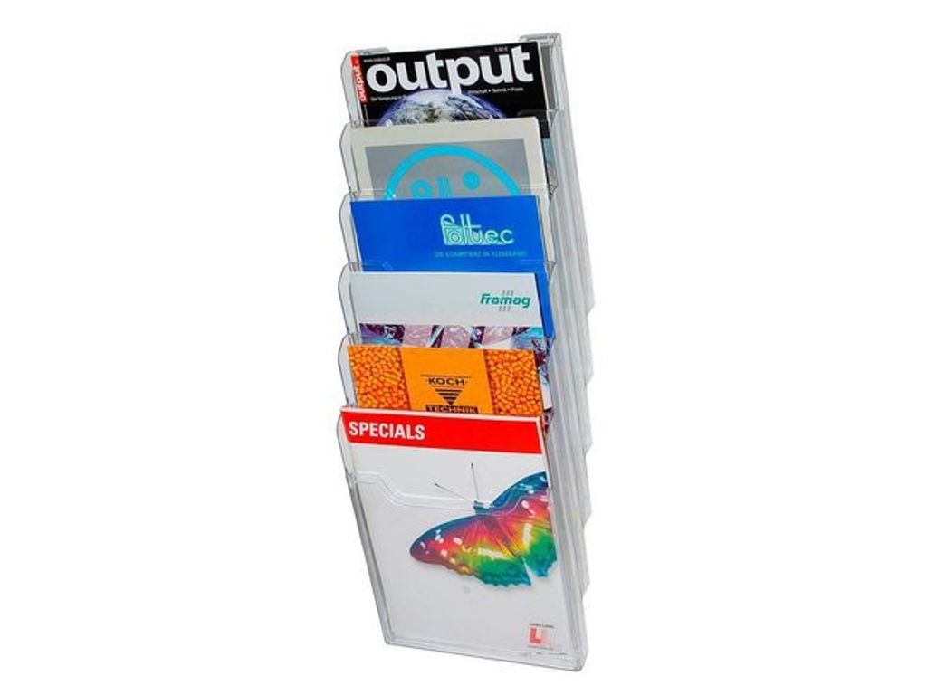 6 fack för stående A4-format med möjlighet till utbyggnad. Varje fack har en justerbar etiketthållare och levereras färdigmonterad. Monteringsbeslag för väggmontering medföljer. Varje fack är 26 mm i djupled. Mått: HxBxD 66,5 x 23,9 x 15,5 cm