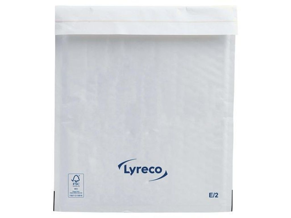 Bubbelkuvert från Lyreco. Vitt bubbelkuvert som lämpar sig som postemballage för varuprover, böcker, foton, smycken, reservdelar m.m. - Antal: 100/fp - Tillverkat i FSC®-certifierat kraftpapper med skyddande AirCap®-bubbelplast - Storlek: 220 x 260 mm