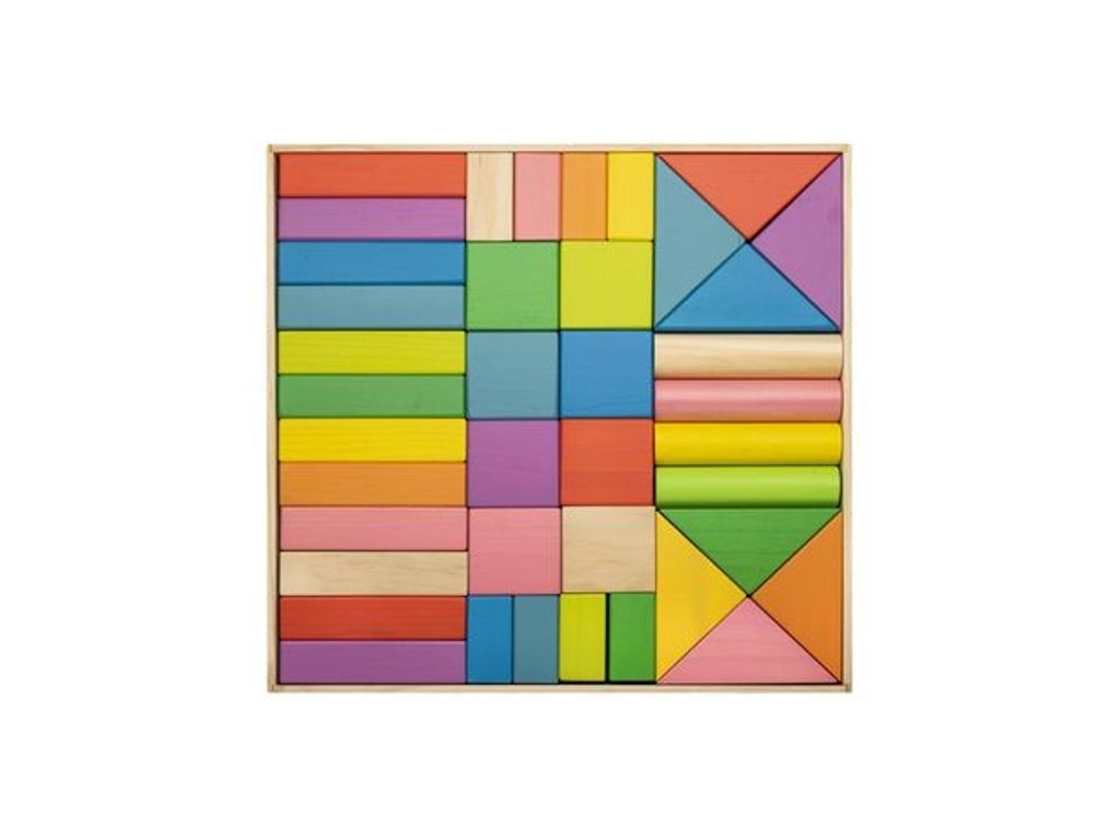 Främjar igenkänning av form och färg, idealisk för finmotorik och hand-ögonkoordination. De iögonfallande färgerna i kombination med olika former så som rutor, rektanglar och stavar för att nämna några, gör dessa block till ett mångsidigt hjälpmedel i kreativ lek. Detta generöst tilltagna set är tillräckligt stort för flera barn att använda samtidigt för att främja samarbetsförmåga. - Material: Furu, plywood - FSC-certifierat trä - Varje set innehåller 44 delar och en träbricka - Mått: cirka 36x36x5 cm (största blocket 6x6x2,5 cm och minsta 5x3 cm) - Brickan är idealisk för förvaring.