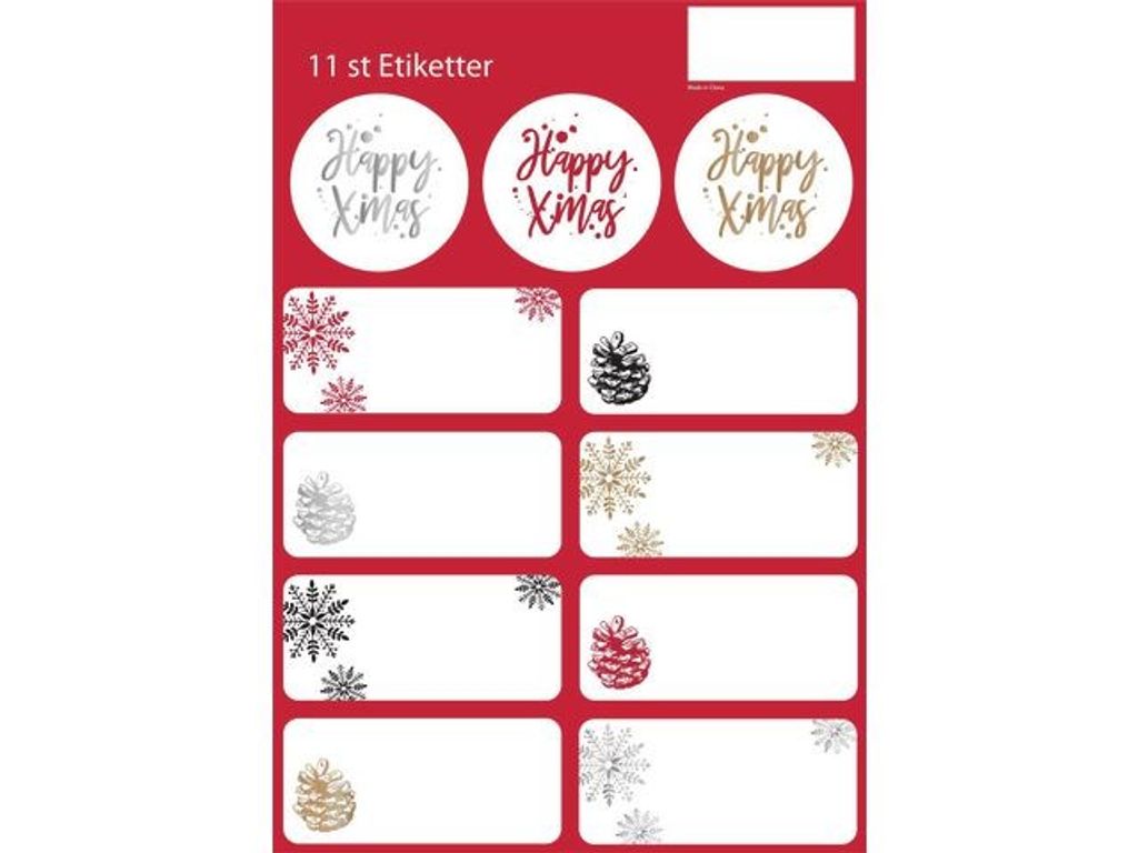 Beskrivning av Christmas Stickers Fina etiketter där du snabbt och lätt kan klistra på paketet och skriva en personlig hälsning. Klisteretiketter med julinspirerande motiv. - FSC-certifierade - Storlek: 16x23cm - 2 ark/fp - 11 etiketter/ark