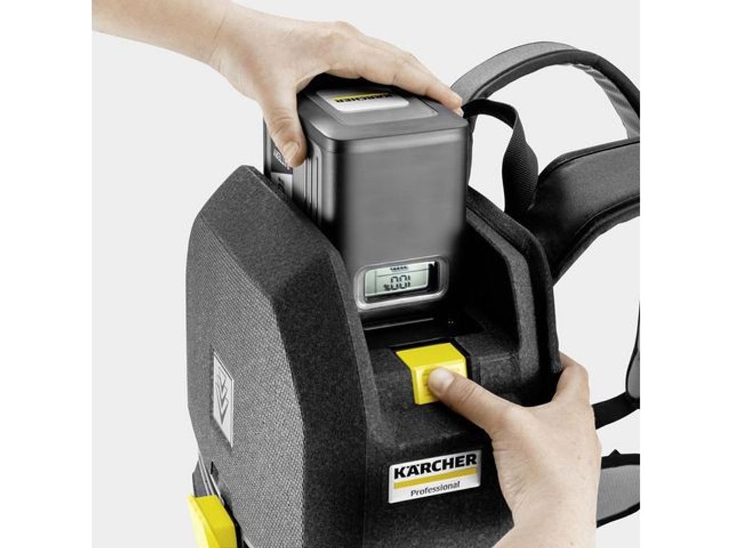Ergonomisk sladdlös och kraftfull ryggdammsugare från Kärcher. Kärchers ultralätta, kraftfulla och batteridrivna ryggdammsugare BVL 5/1 Bp Pack väger tack vare det innovativa EPP materialet under 4,6 kg (buren vikt på ryggen) och som med materialets egenskaper dessutom är extremt robust och slagtålig. Med en effekt på 500 watt, en lång batteridriftstid och en 5 liters behållare så blir ryggdammsugaren sammantaget det första valet överallt där utrymmet och miljön gör dammsugning till en utmaning med en traditionell dammsugare. Perfekt för användning i biografer, flygplan, bussar, tåg, på ett trångt möblerat kontor eller i trapphus. Den ergonomiska konstruktionen och ramen och den genomtänkta utformningen av maskinen med alla viktiga funktioner kontrollerade via en fjärrkontroll som fästs i midjefästet samt även det enkla handhavandet oavsett om du är höger eller vänsterhänt säkerställer bekvämt och bekymmersfritt arbete. Olika tillbehör såsom ett HEPA 14 filter finns tillgängligt. Kärchers kraftfulla Battery Power+ batteri samt tillhörande laddare och en slitstark fleecepåse ingår i förpackningen. Batteritid 50 min eco och 35 min boost beroende lite på förutsättningar såsom material som dammsugs och temperatur. 5 års garanti på batteriet och klarar mellan 5000-7000 laddningar. - Bärramen är bekväm även när den används under långa arbetspass - Tillverkad av extremt lätt, innovativt EPP (expanderad polypropylen) - Manöverpanel på midjeselen ger bekväm styrning av alla funktioner - Lithium-ion batteri, 36V/5,0A