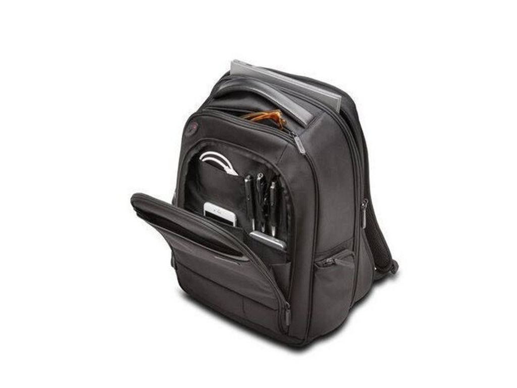 Den perfekta ryggsäcken för bärbara datorer för mobila yrkesutövare. Ergonomiskt godkända Kensington Contour 2.0 15,6 tum Business Laptop Backpack är bekväm, säker, elegant, robust och TSA-vänlig. Ryggsäcken har en värmeavledande, konturerad rygg som sitter tätt intill kroppen och flyttar vikten närmare tyngdpunkten när du använder båda remmarna. - Särskilt placerade fickor bidrar till att fördela vikten jämnt och att balansera innehållet. - Vadderade bärhandtag ger ytterligare ett bekvämt alternativ till hur väskan kan bäras - Ett säkerhetsutrymme för en bärbar dator med en punkteringssäkrad låsbar dragkedja skyddar din bärbara dator eller datorplatta från intrång - En RFID-säkerhetsficka skyddar kreditkort, pass och allt som har ett inbyggt RFID-chip från att skannas av kriminella. - Rymmer en bärbar dator eller enhet upp till 15,6 tum, en 9,7 tum datorplatta och flera filer - Öppning för rullväska och integrerad flaskhållare för extra bekvämlighet