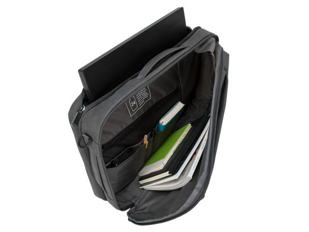 En väska med unik design som gör att du antingen kan bära den som en ryggsäck eller som en portfölj Tillverkad av återvunnet material inifrån och ut. Cypress Hero 15,6' konvertibel ryggsäck med EcoSmart är tillverkad i ett material som vävts av 24 återvunna plastvattenflaskor och är omsorgsfullt utformad för att skydda din arbetsutrustning samtidigt som den skyddar miljön. Denna miljövänliga väska är gjord för att passa bärbara datorer på 15,6'. Väskans unika design gör att du antingen kan bära den som en ryggsäck eller som en portfölj och axelremmarna kan stoppas undan när den inte används. Bland övriga funktioner finns ett särskilt vadderat fack att förvara din bärbara dator i, två huvudfack med fickor för att hålla dina mappar och vardagsprylar i ordning, ergonomiska axelremmar som gör din pendling bekvämare och en bagagerem för att fästa den konvertibla ryggsäcken på din rullväska. - - Tillverkad av 24 återvunna vattenflaskor - Förvandlas från ryggsäck till portfölj - Axelremmarna kan stoppas undan när de inte används - Bekväma bärhandtag på ovansidan och sidan - Särskilt vadderat fack för bärbar dator - Två huvudfack för mappar och utrustning med fickor för mindre tillbehör - Lättåtkomlig framficka - Ergonomiska axelremmar och vadderad ryggpanel för att bäras bekvämt Genomgående rem att fästa på en bagageväska på hjul - Material: ECO 300 - Ventilerad baksida i meshmaterial - Mått: B 32 x D 10,5 x H 48,5 cm - Vikt: 900 g - Kapacitet: 19 liter -