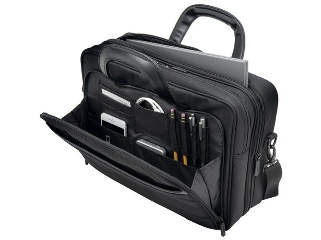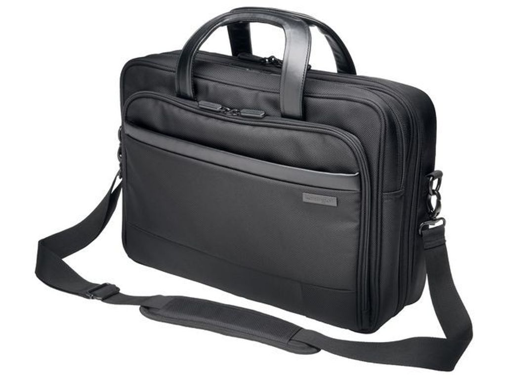 Den perfekta portföljen för bärbara datorer för mobila yrkesutövare. Ergonomiskt godkända Kensington Contour 2.0 15,6 tum Business Laptop Briefcase är bekväm, säker, elegant, robust och TSA-vänlig. Portföljen har en konturerad sida som sitter tätt intill kroppen och flyttar vikten närmare tyngdpunkten när du lyfter ordentligt. - Särskilt placerade fickor bidrar till att fördela vikten jämnt och att balansera innehållet. - Vadderade bärhandtag ger ytterligare ett bekvämt alternativ till hur väskan kan bäras - Ett säkerhetsutrymme för en bärbar dator med en punkteringssäkrad låsbar dragkedja skyddar din bärbara dator eller datorplatta från intrång - En RFID-säkerhetsficka skyddar kreditkort, pass och allt som har ett inbyggt RFID-chip från att skannas av kriminella. - Rymmer en bärbar dator eller enhet upp till 15,6 tum, en 9,7 tum datorplatta och flera filer - Öppning för rullväska och lättåtkomliga fickor för extra bekvämlighet.