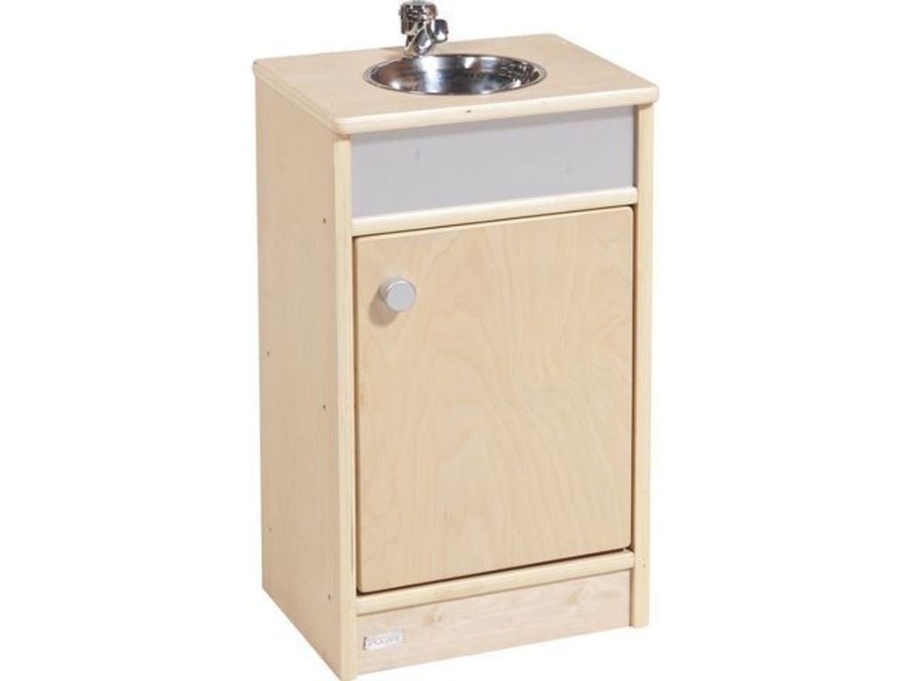 Gedigen och välddetaljerad diskbänksmodul från Grocare-barnköksserie. Välbyggd och solid av massivt klarlackerad björk med många fina detaljer som gör köksleken verklig för barnen. Imitationsvridbar kran och ho av rostfritt stål, öppningsbar dörr med solida hyllplan på insidan samt kraftiga gångjärn med soft close-funktion. - Mått: B36xH62xD40 cm