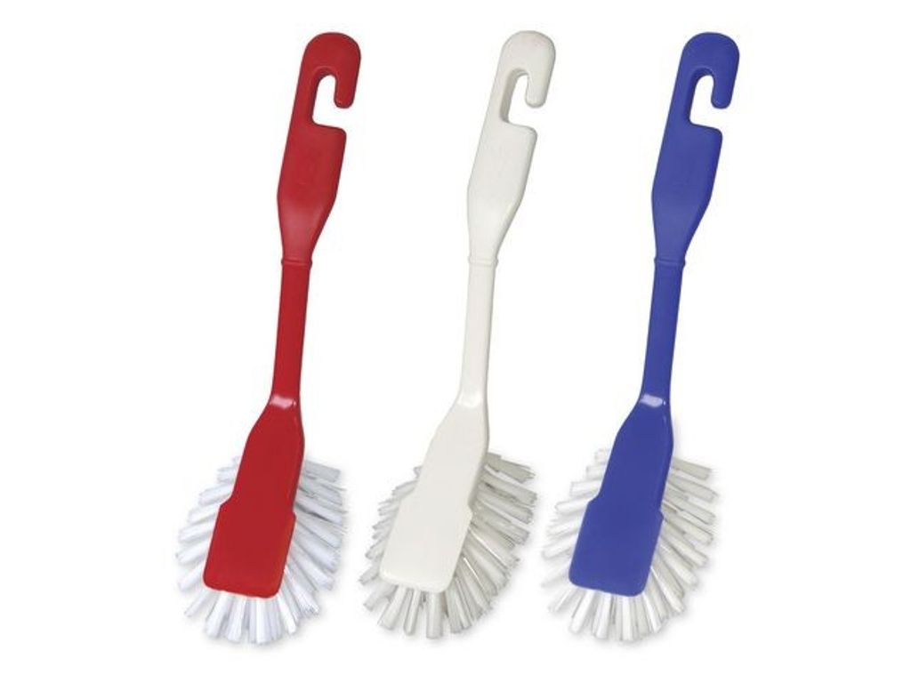 Handdiskborste från NORDEX® som är lätt, bekväm och hållbar för användning i varmt vatten hemma eller på kontoret. Det här städredskapet är tillverkat av starkt plastmaterial, vilket gör den robust och tålig. Dess borsthår i polypropylen skrubbar bort smuts, fett och smuts, vilket gör borsten extremt effektiv vid rengöring. Borsten har skrapkanter för de där områdena med smuts som är svår att få bort. Alternativet att hänga borsten i en upphängningskrok i änden ökar renligheten och förvaringsmöjligheterna för den här borsten. Perfekt för användning i skolor, affärslokaler och hemmiljöer där hälsa och säkerhet är viktigt. - Lättviktigt - Tålig - Bekväm att använda - Enkel förvaring - Material: Plast och polypropylen - Färg: Blandade färger (röd, vit, blå) - Längd: 250 mm